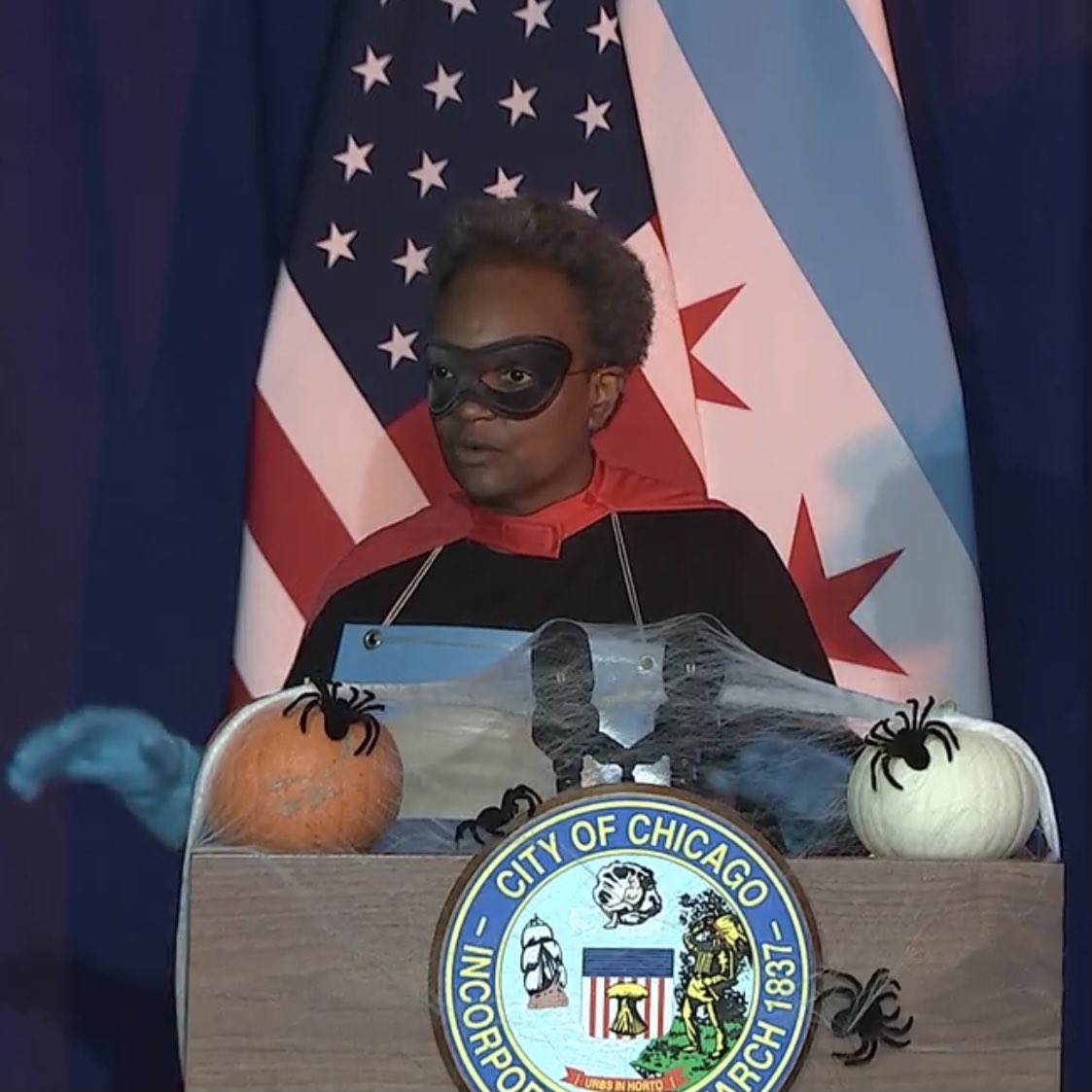 After photos of idris dressed as mayor lori. She showed her city she's tough on the virus by showing up to her press conference wearing a rona destroyer superhero like costume while passing out treats to crew members as she walked in. Lightfoot, wearing a superhero mask and armed with clorox bleach wipes, joined dr. A lot of people believe idris lockett won. Halloween in chicago isn't canceled after all.